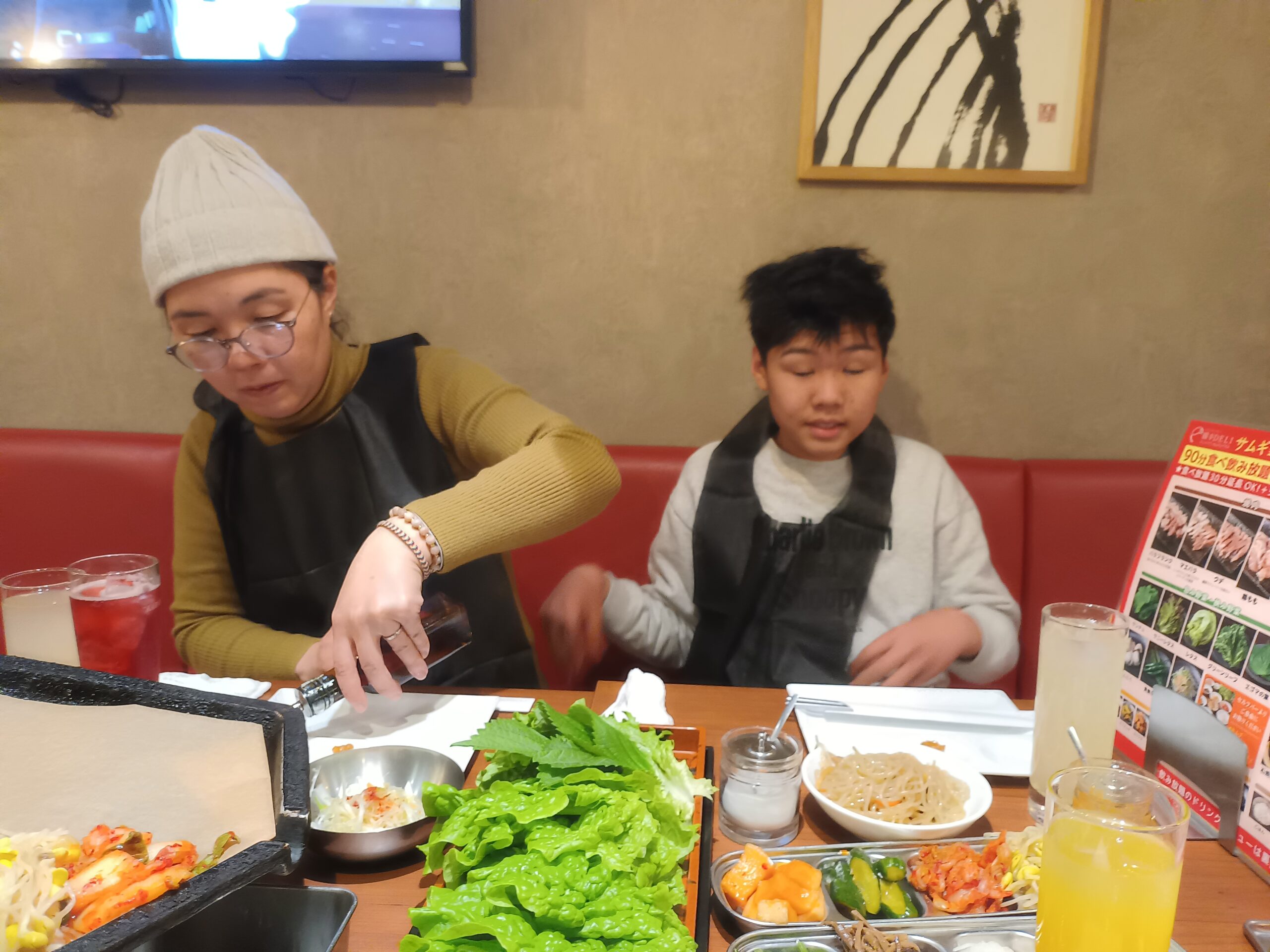 帰りは三宮に寄って、先日行った韓国料理のお店「韓辛デリ 神戸三宮生田ロード店」に行き、今回も事前予約して1.5時間食べ飲み放題3,278円にしました。サムギョプサル・石焼ビビンバ・韓国おでん・チヂミ・チョレギサラダなどを満喫してきました。他にも食べたいものがあったのですが、全員お腹いっぱいになりギブアップしました(笑)。