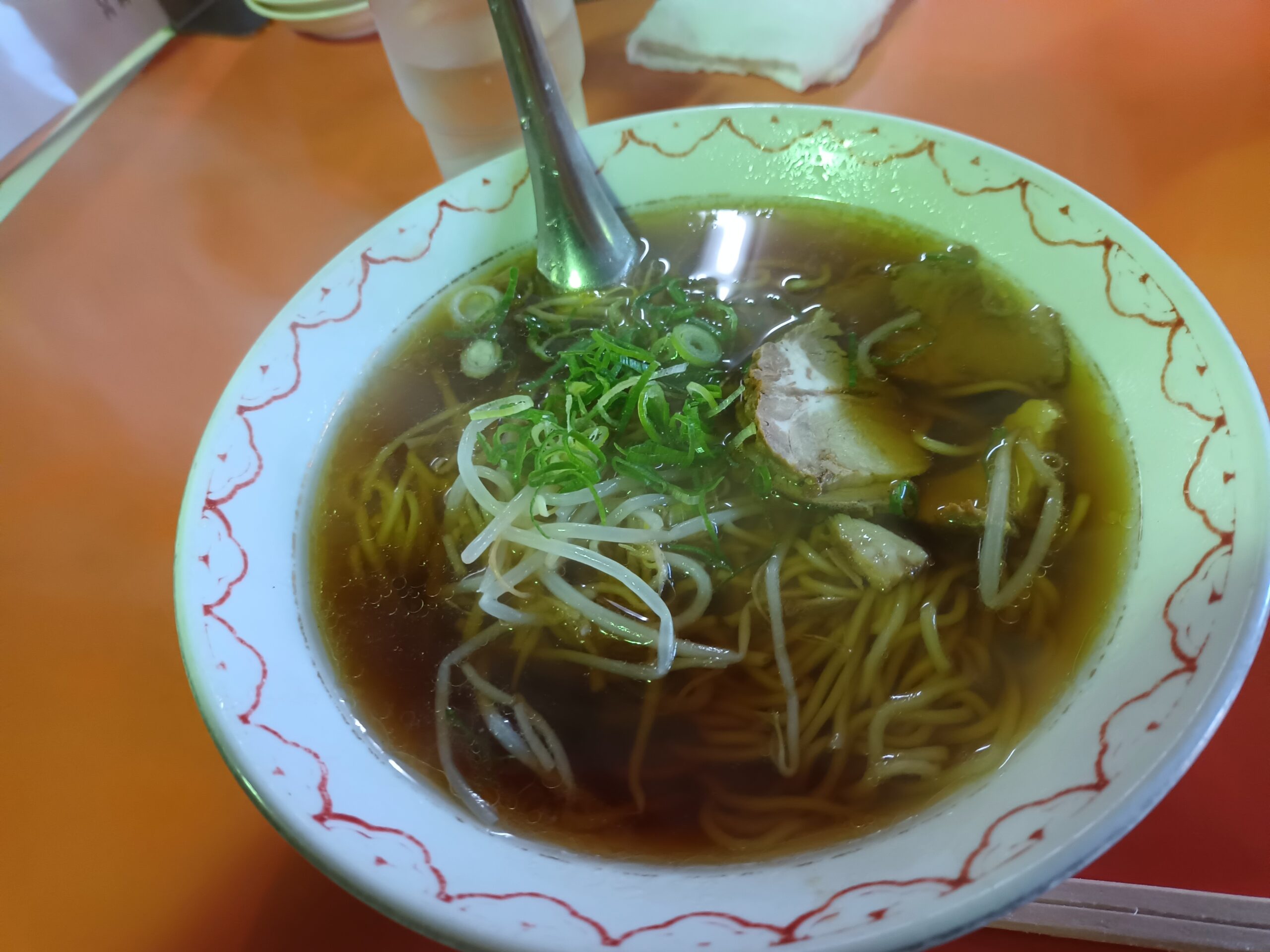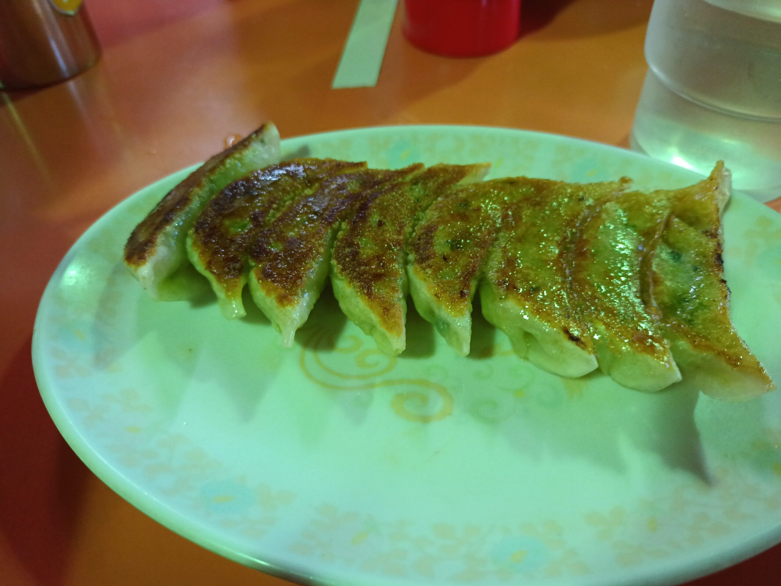 妻と私は名物の長崎チャンポン(950円)を、息子は醬油ラーメン(750円)を注文し、餃子(8個入り400円)も3人でシェアしました。